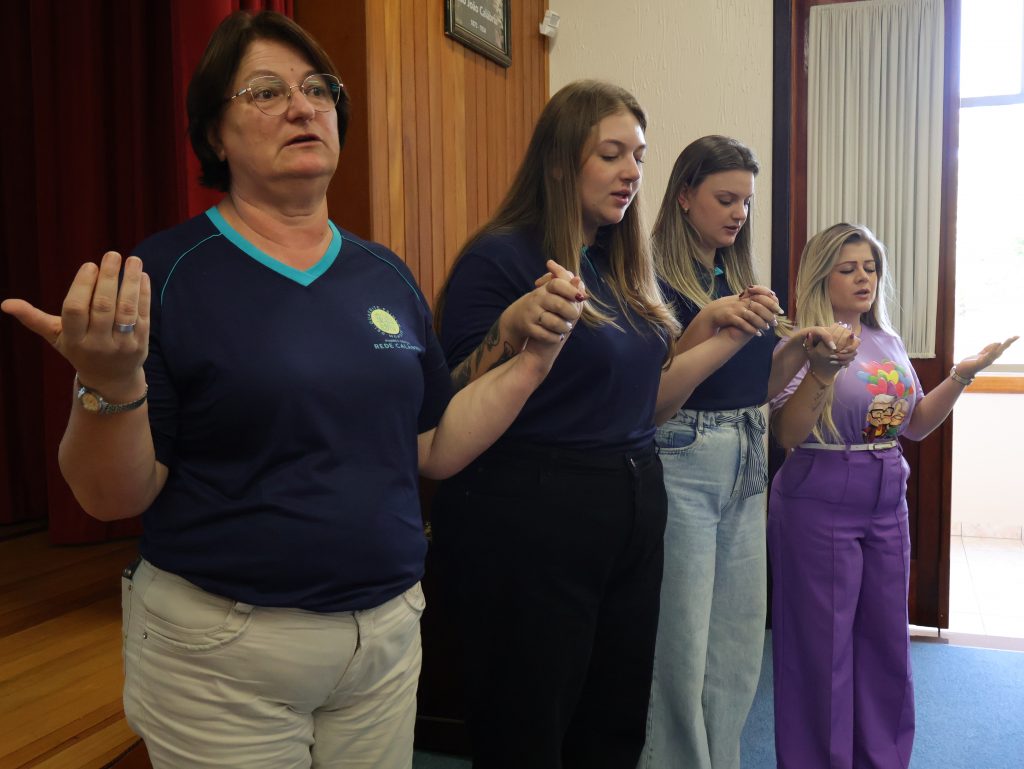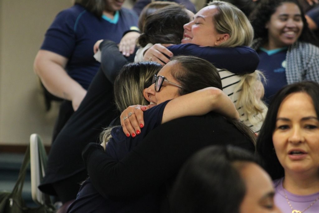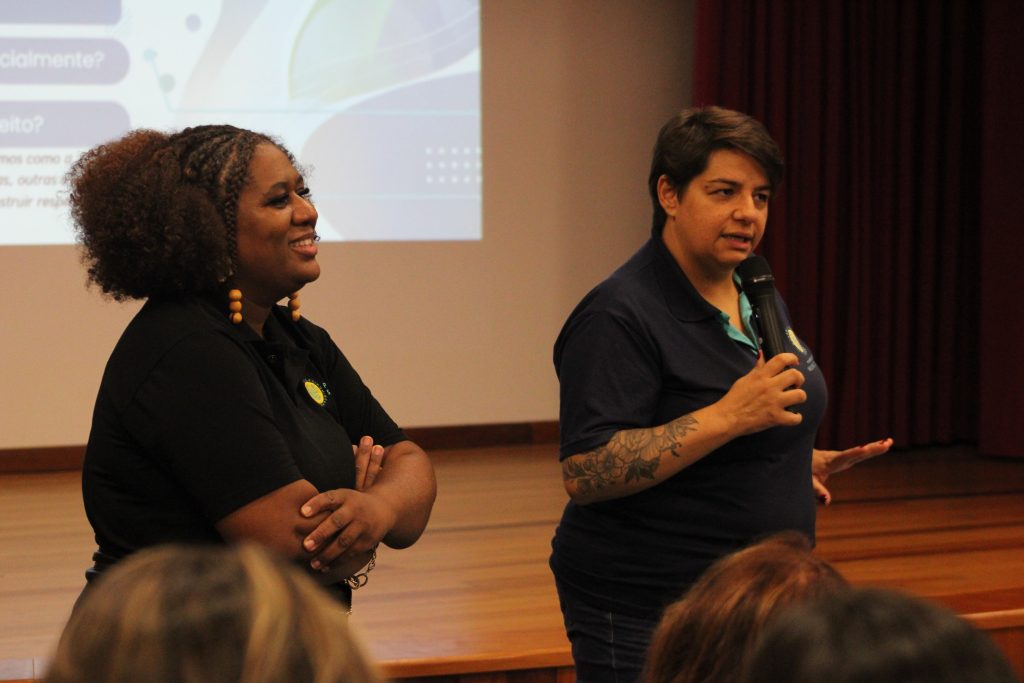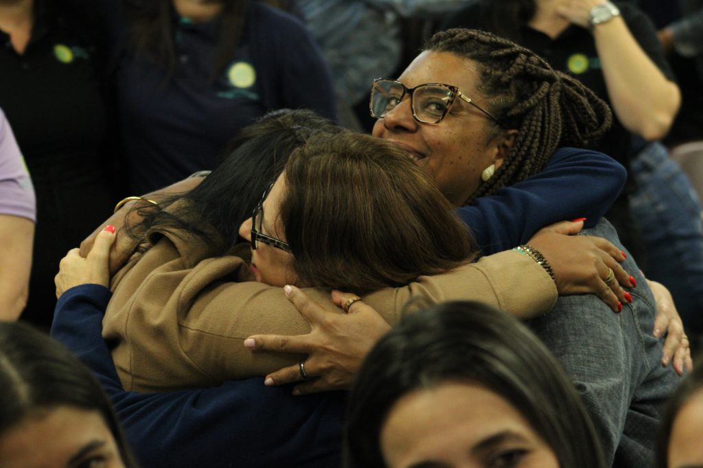 O grande destaque do dia formativo foi a palestra Diversidade, Ética, Integridade e Letramento Racial, conduzida pela educadora e coordenadora técnica das escolas de Educação Infantil da Rede, Suélen Rochelle. Em sintonia com os valores e princípios institucionais, especialmente no compromisso com o acolhimento da diversidade e a promoção da equidade, o tema também favoreceu a partilha de vivências pessoais. Entre escutas sensíveis e falas carregadas de representatividade, os participantes puderam fortalecer o sentimento de pertencimento a uma rede que se constrói no respeito às diferenças e na valorização de cada história.