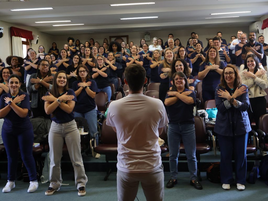 Ao término, uma atividade em grupo explorou estudos de caso acompanhados de perguntas orientadoras, nas quais os colaboradores refletiram sobre como agir diante de situações de racismo, etarismo, homofobia e outras formas de discriminação. A proposta buscou fortalecer práticas que garantam a equidade, promovendo ajustes na rotina e intervenções mais conscientes e adequadas no cotidiano institucional, por meio de uma abordagem prática e aplicada.