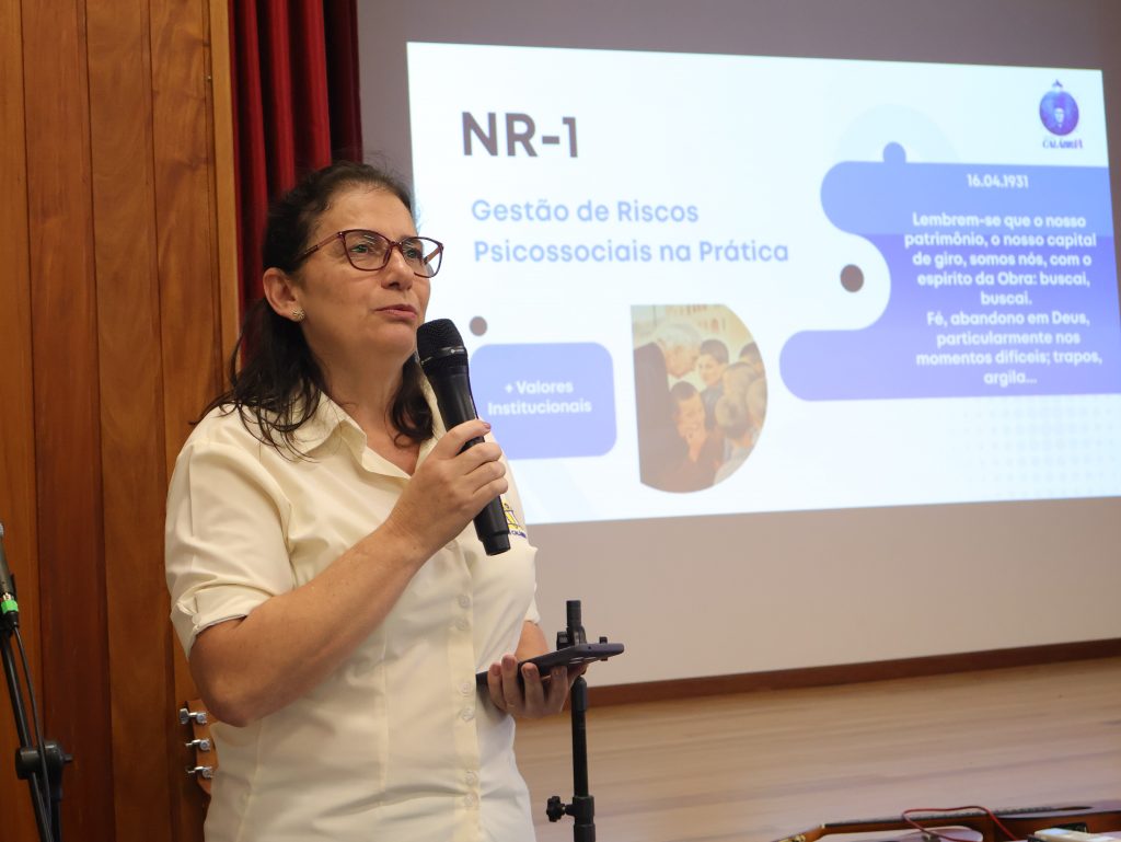“Sobre a NR-1, reforçamos as práticas já desenvolvidas voltadas à gestão dos riscos psicossociais. Abordamos a responsabilidade institucional, a prevenção de riscos e a promoção de um ambiente acolhedor e seguro para os colaboradores, em alinhamento aos valores de ética, equidade e fraternidade. Destacamos, ainda, a importância de registrar de forma contínua os momentos de escuta, fortalecendo o cuidado e o respeito no dia a dia”. Destaca Marinês Zanella, diretora-geral da Rede Calábria.