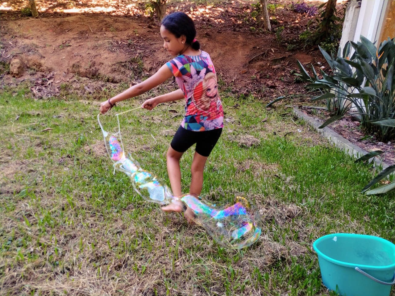 barbante para fazerem bolhas de sabão gigantes.