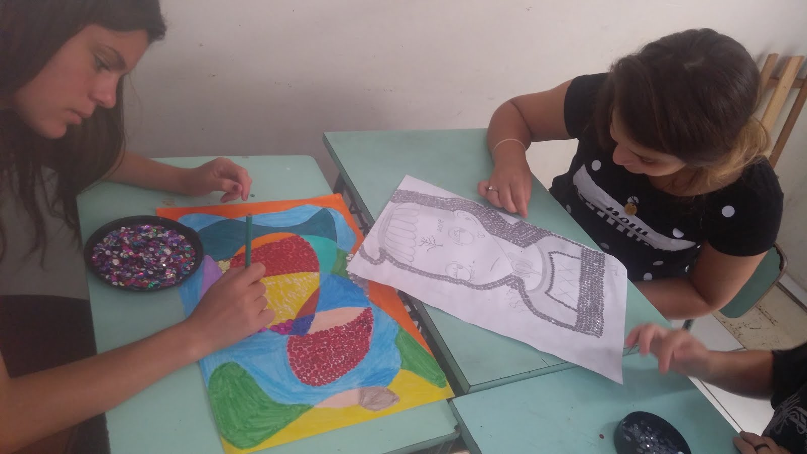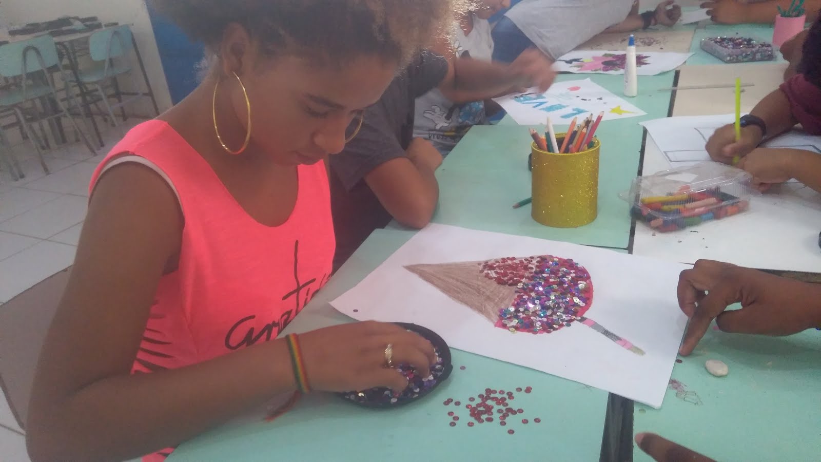 utilizando lantejoulas. Chegado o grande momento da decoração com “brilhos”,