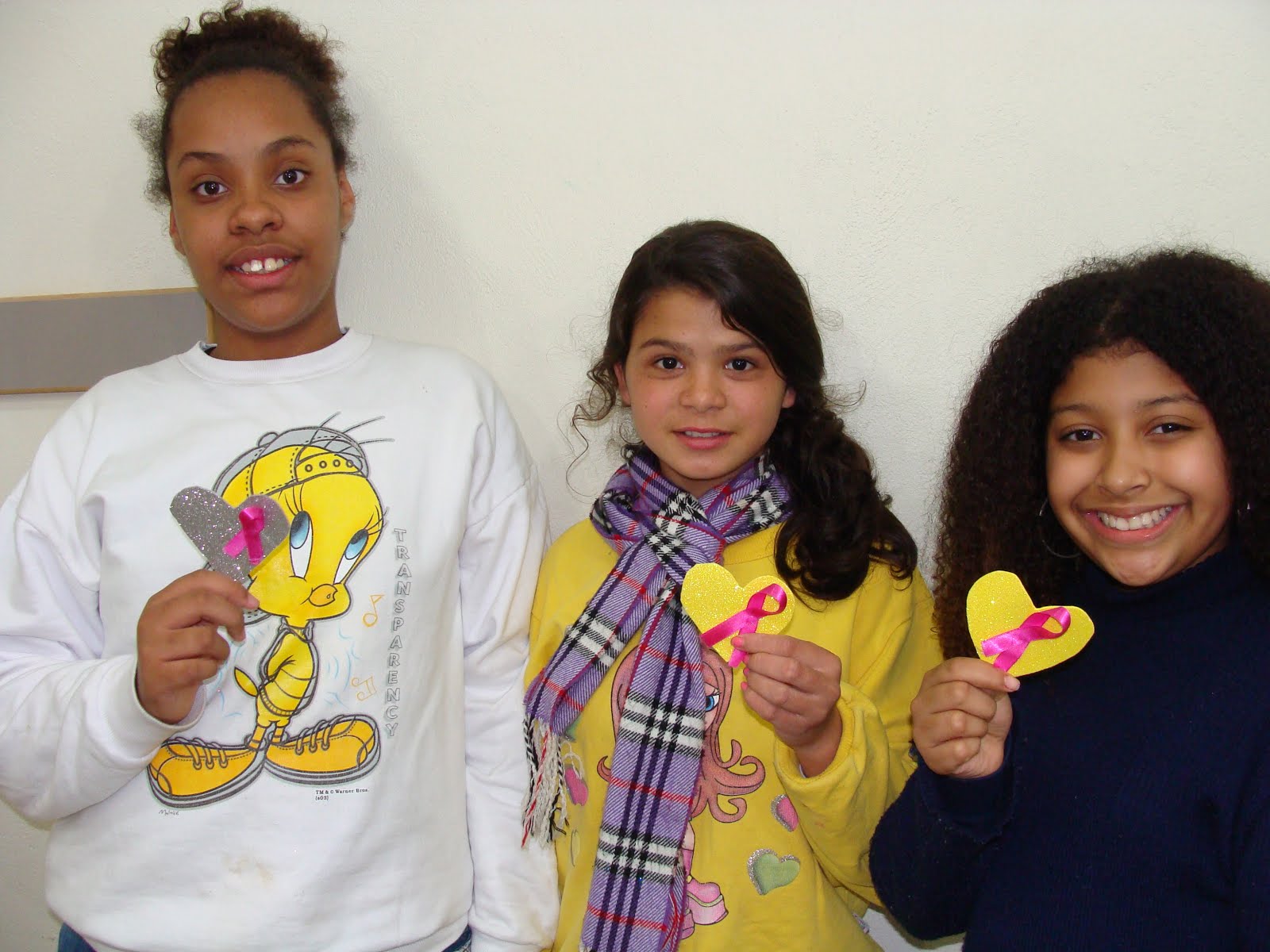 gostei de fazer os corações e conversar com a minha família sobre o câncer de