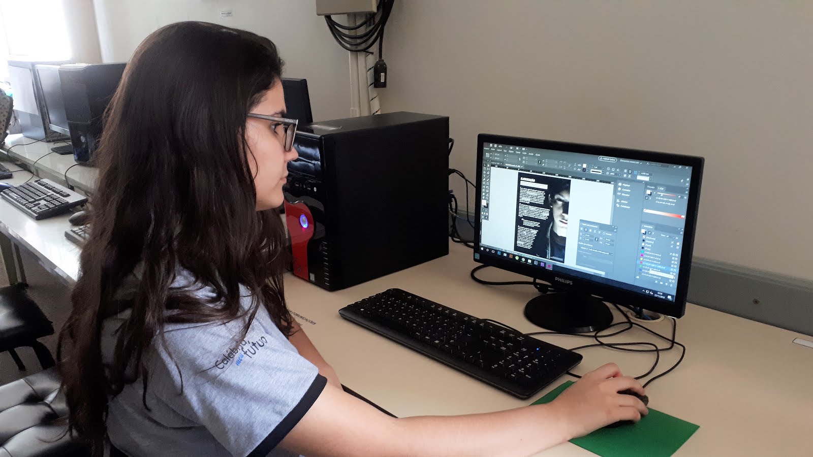 do curso Design Multimídia iniciaram o processo de diagramação de uma Revista.