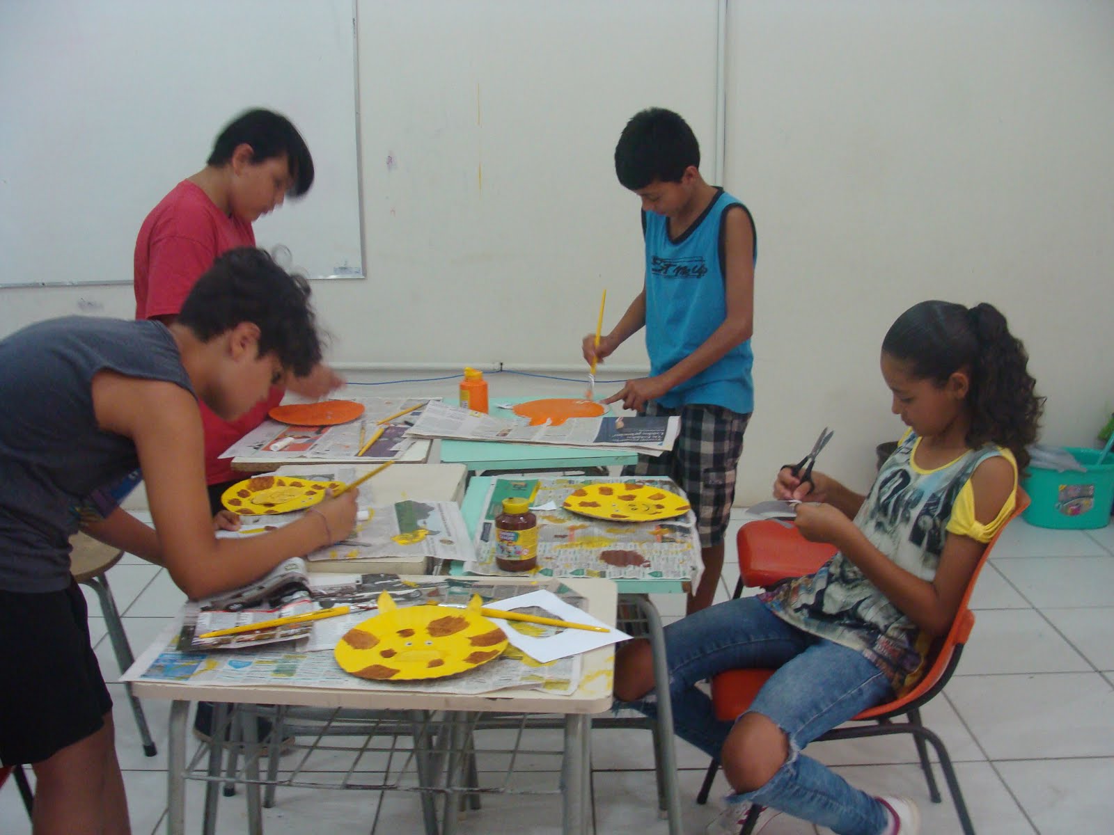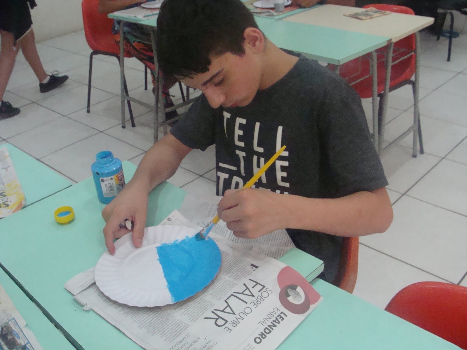 criativo e que com materiais simples – um prato de papelão e tinta – eles