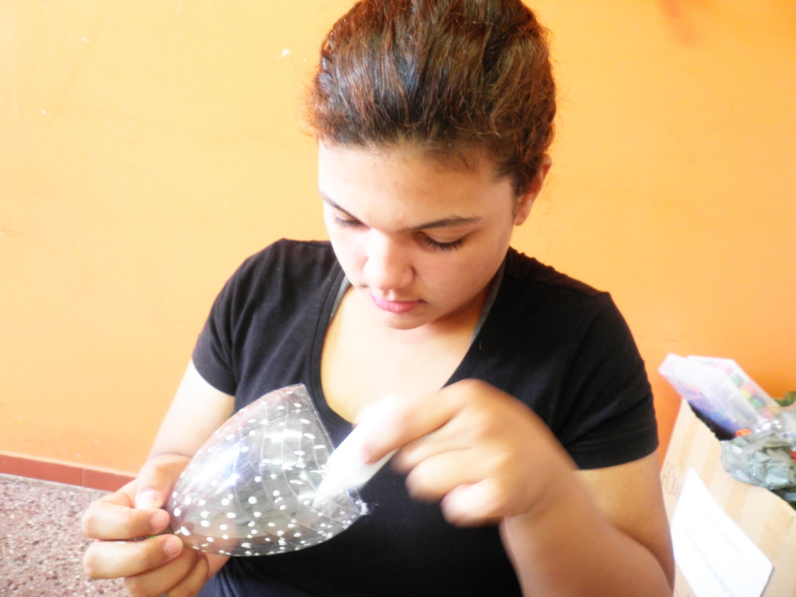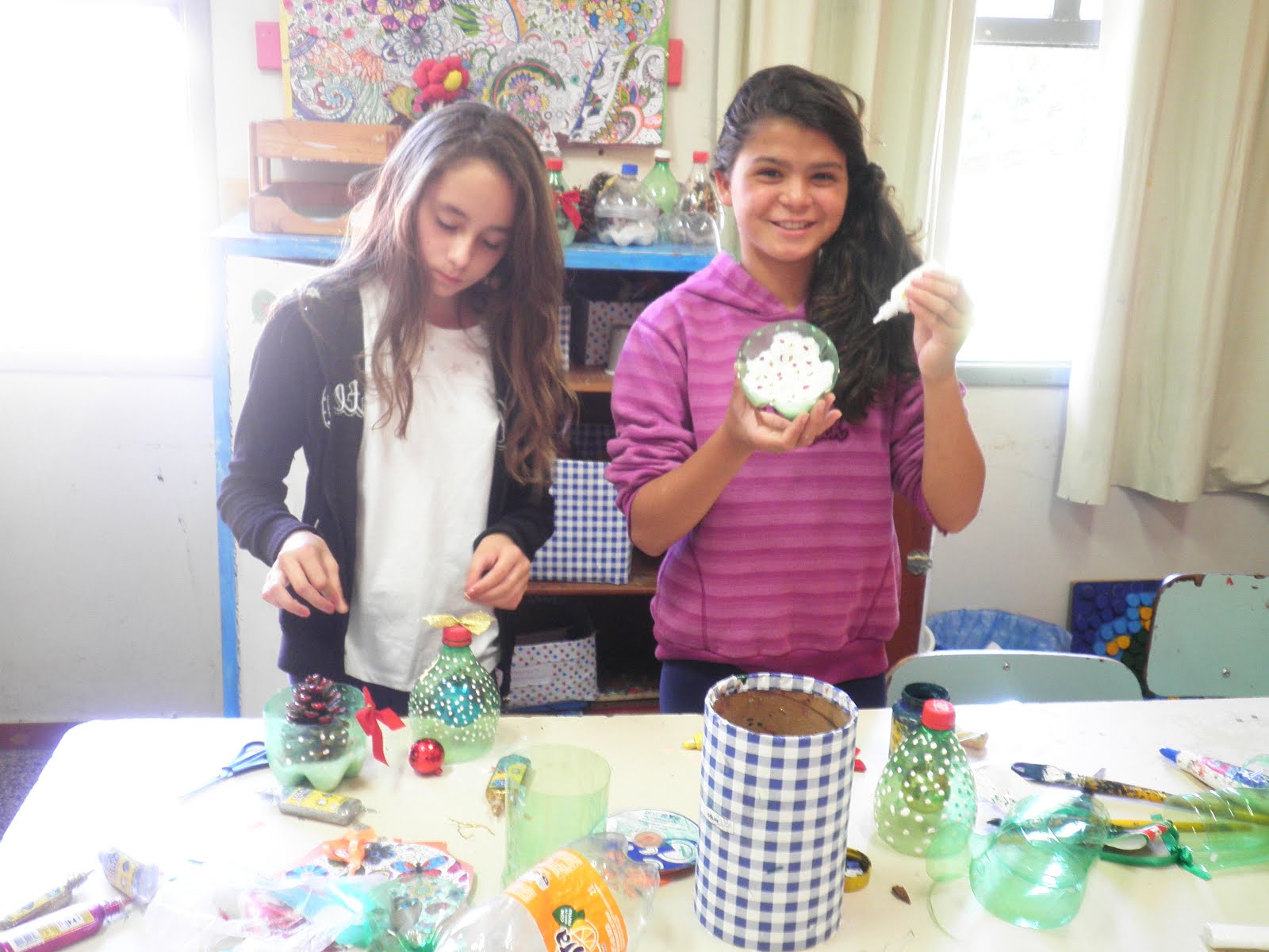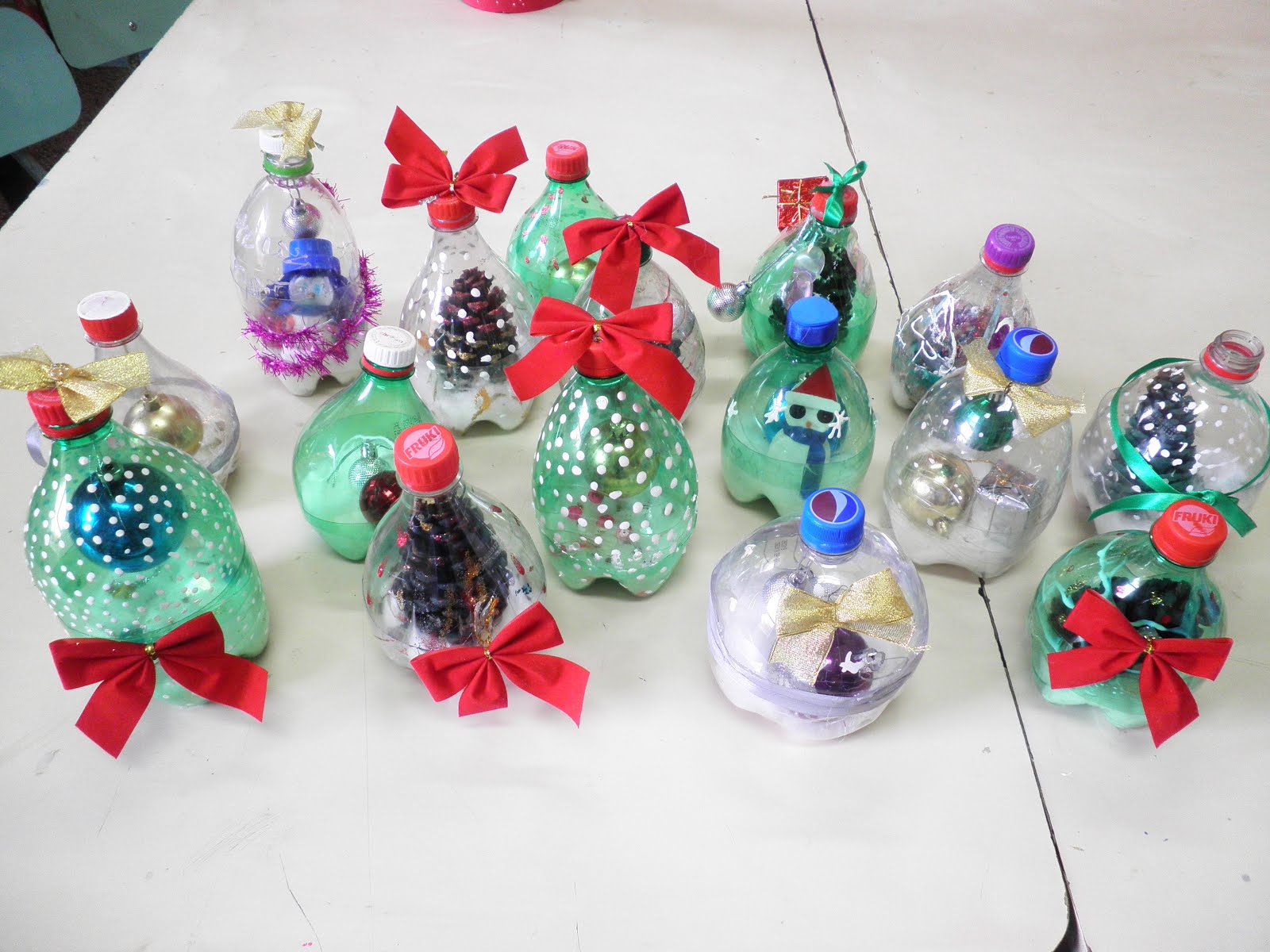 Educandos produzem presentes natalinos feitos com garrafa pet