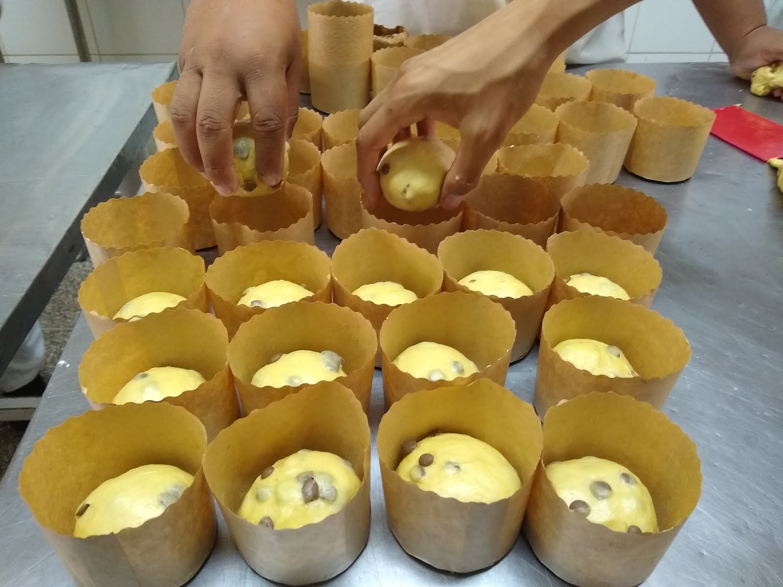 produção de Panetones de frutas cristalizadas e Chocotones com gotas de