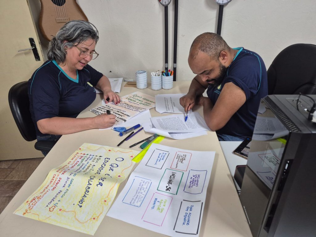 A reflexão conduziu os colaboradores à análise de suas turmas de referência, considerando perfis, necessidades e potencialidades. A dinâmica proposta convidou cada grupo a criar um planejamento baseado em um tipo específico de inteligência e em um perfil de turma, tornando o gesto uma prática concreta e transformadora.