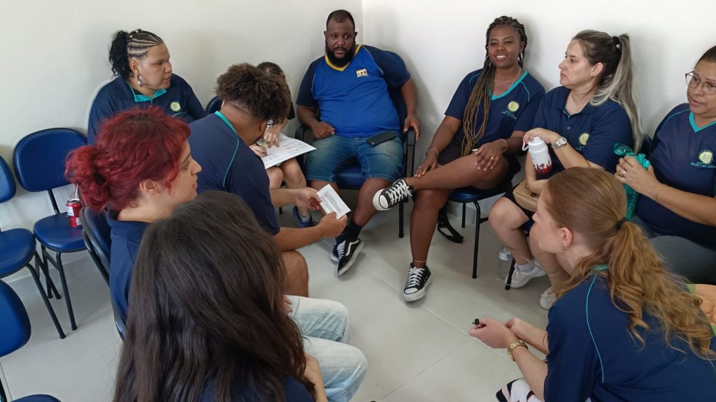 Os participantes puderam trocar ideias sobre boas práticas no contexto educacional, fortalecendo estratégias que promovem vínculos e relações mais humanas no cotidiano das atividades.