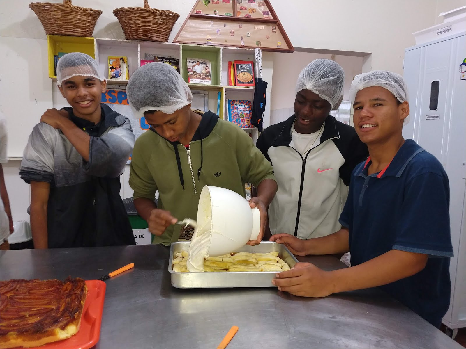 Petit Gateau e Bolo de Banana na padaria do Calábria