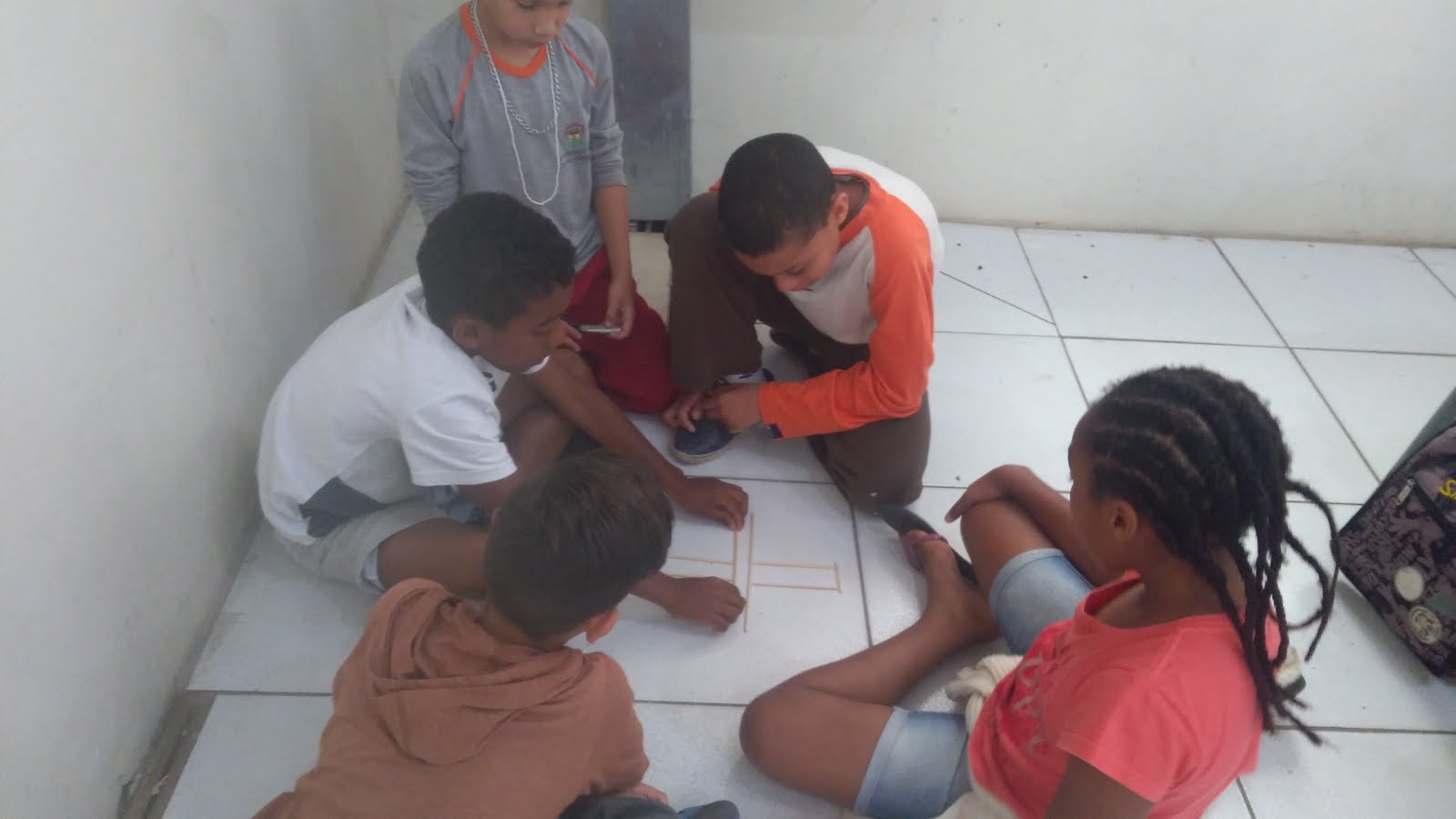 grupos, os educandos receberam palitos de churrasco onde deveriam formar