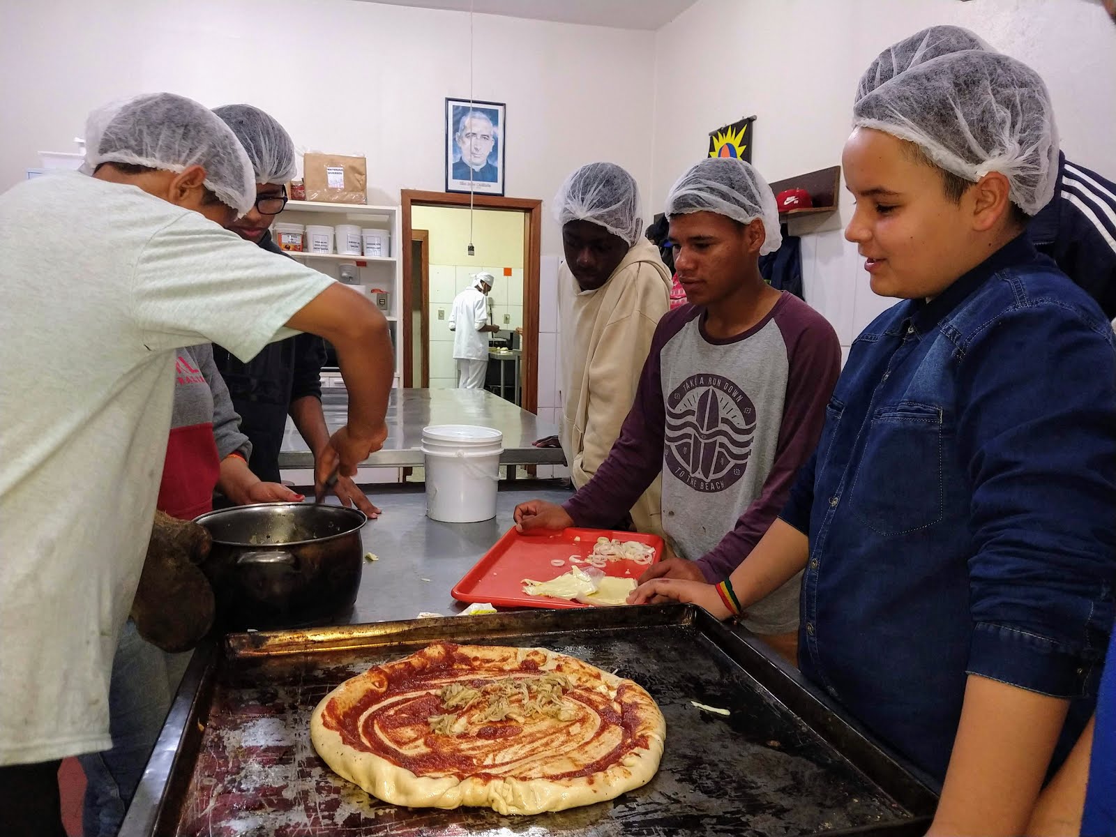 os educandos do trabalho Educativo Lanches Rápidos trabalharam com cortes de