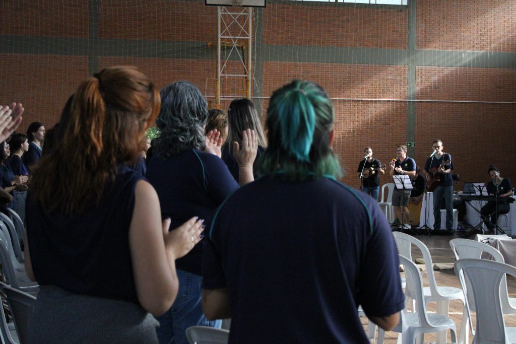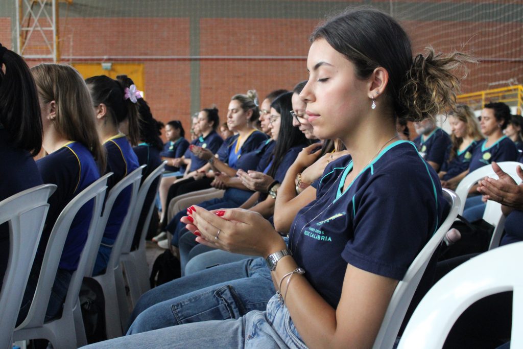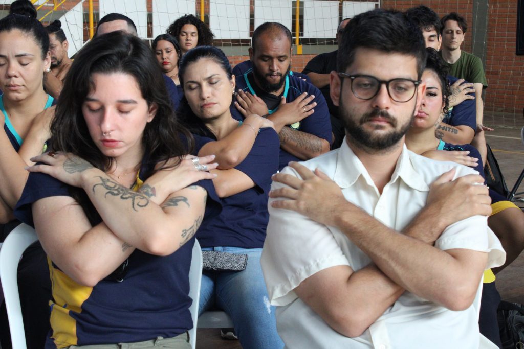 Neste momento de espiritualidade, um chamado interior convidava ao silêncio e à percepção do amor. Por alguns instantes, todos foram incentivados a permanecerem em silêncio, de olhos fechados e atentos à própria respiração, harmonizando-se internamente e em sintonia uns com os outros. O momento foi uma preparação para acolher a profunda mensagem que viria a seguir, apresentada por meio de uma breve encenação teatral realizada pela equipe.