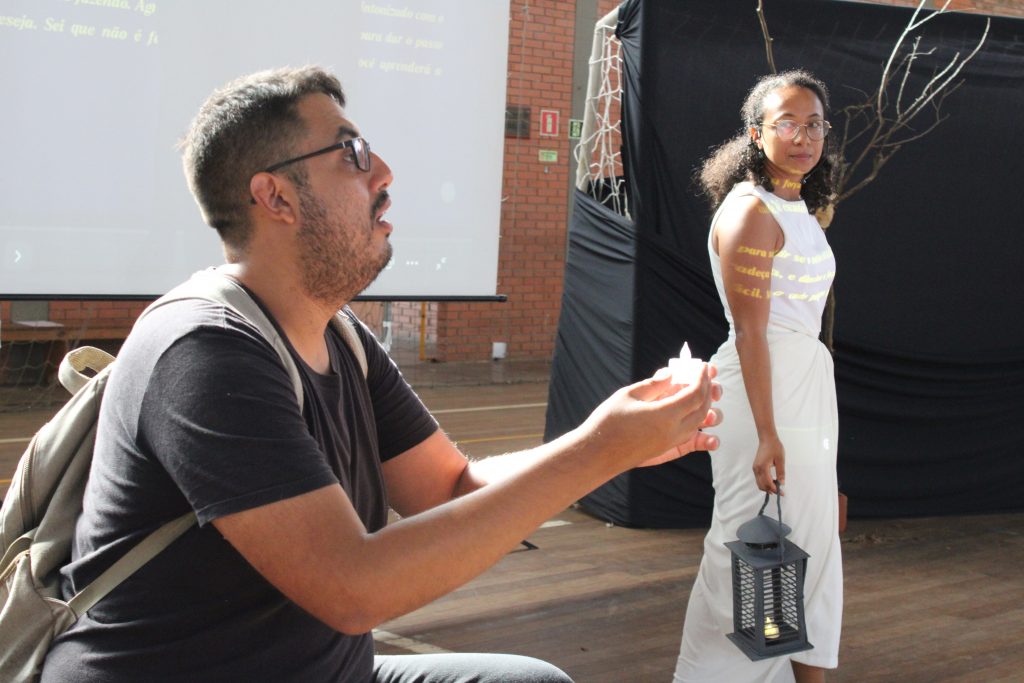O público foi estimulado a uma troca de experiências pessoais e a compartilharem suas percepções sobre a narrativa. Cada um relatou suas próprias histórias e como eles compreendiam o significado espiritual por trás daquela encenação.
