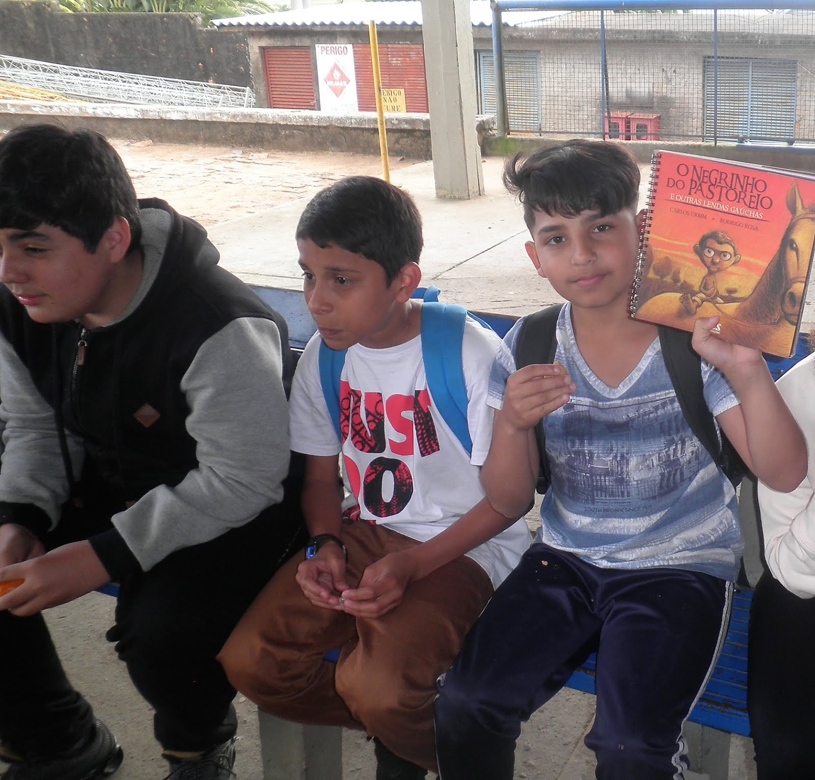Na roda, os educandos se revezavam para ler a lenda do “O Negrinho do