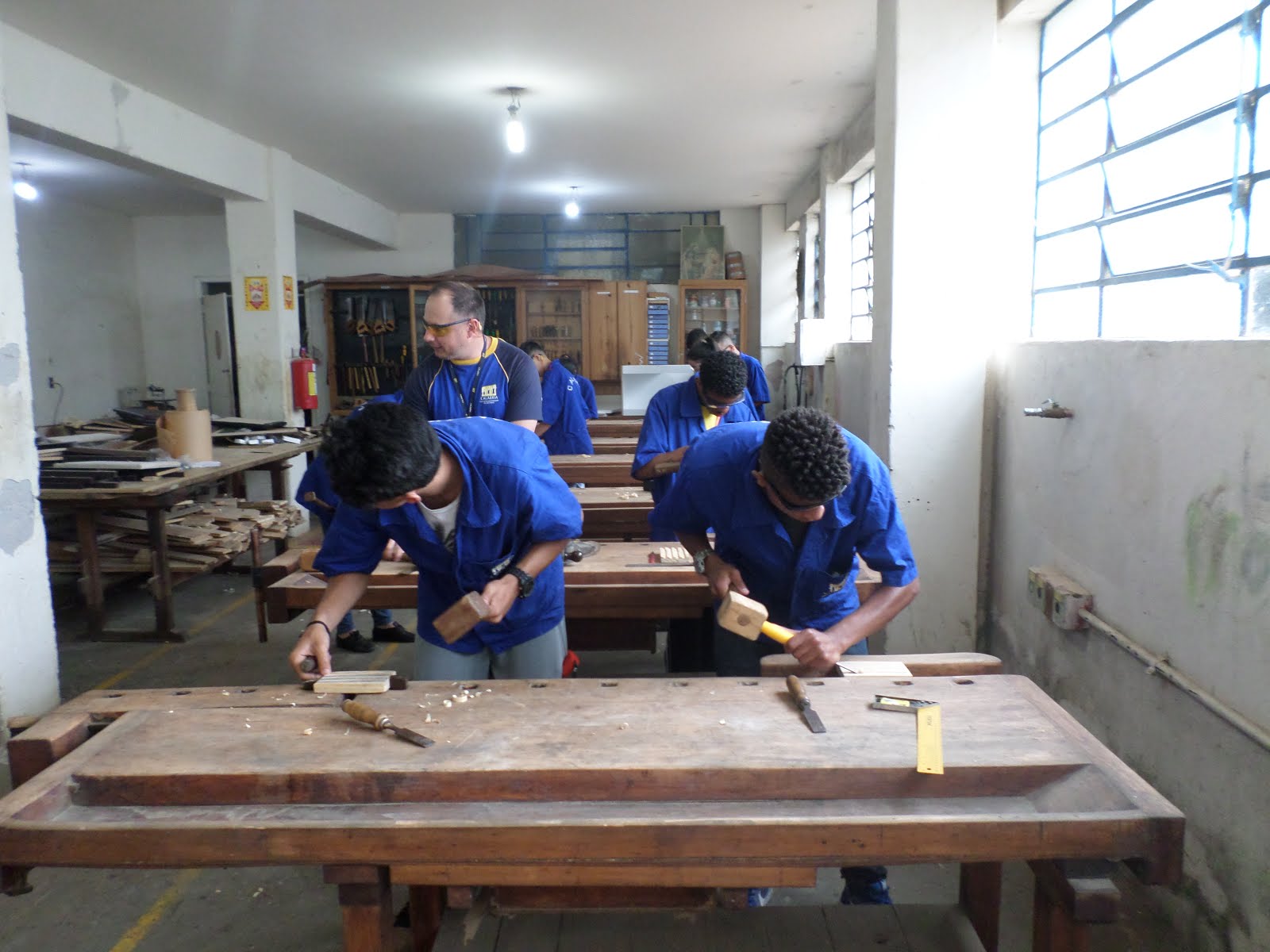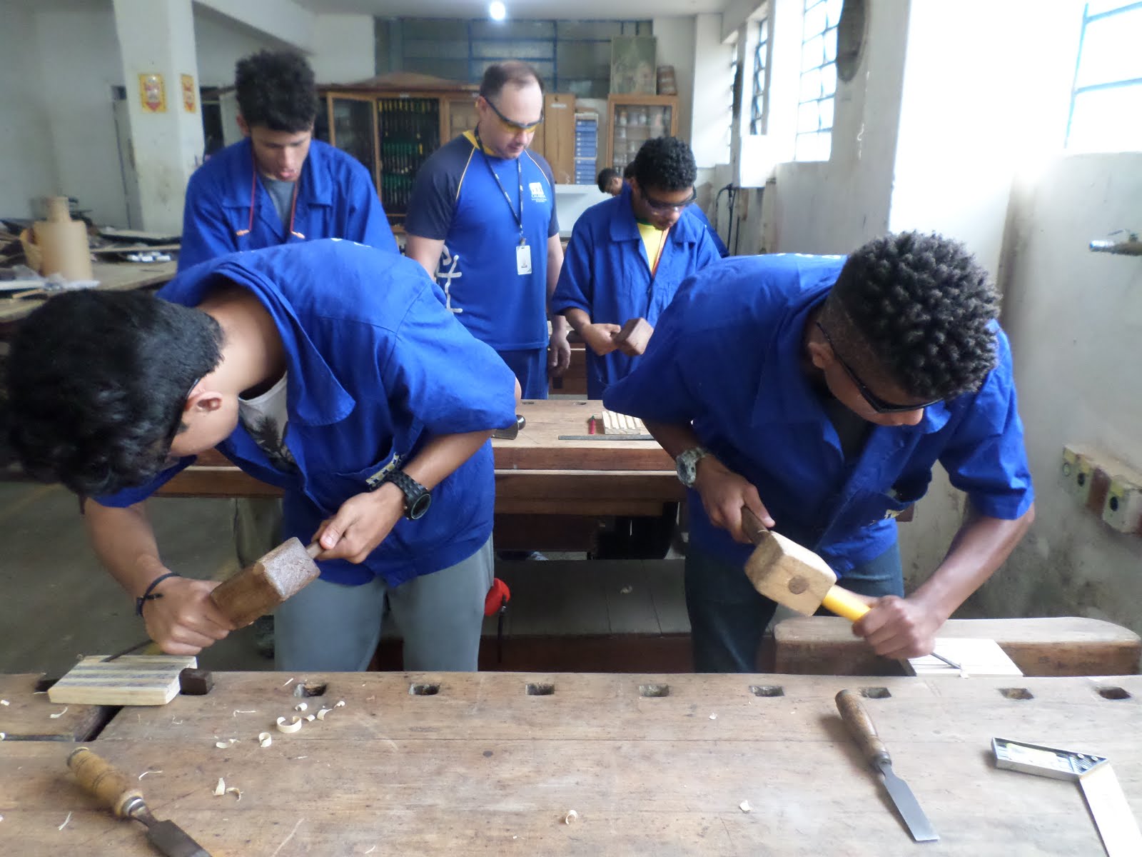 Educandos da Marcenaria entalham e esculpem madeira em atividade prática